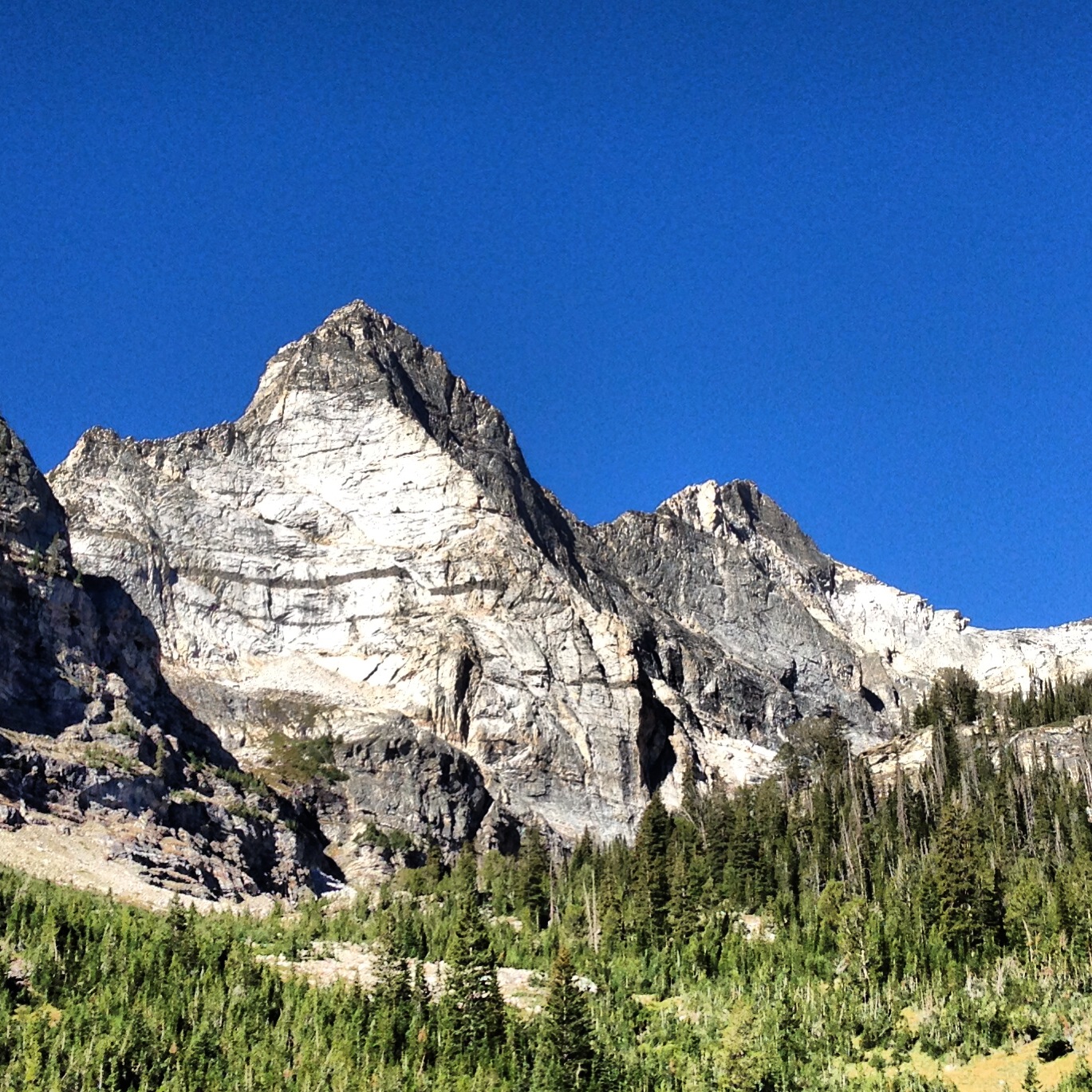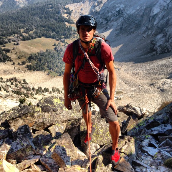 Wow, what a fun climb! A couple of days ago Jeremy, Andrew, and I climbed the northwest face of Mustang peak in the Pioneer Mountains. Not officially named on any map, Mustang peak is also known as Howard peak. Accessible via Wildhorse Creek, the face rises almost 3000′ feet from the valley below. Viewed from afar, this is a beautiful and dramatic peak that looks harder to climb than it is.